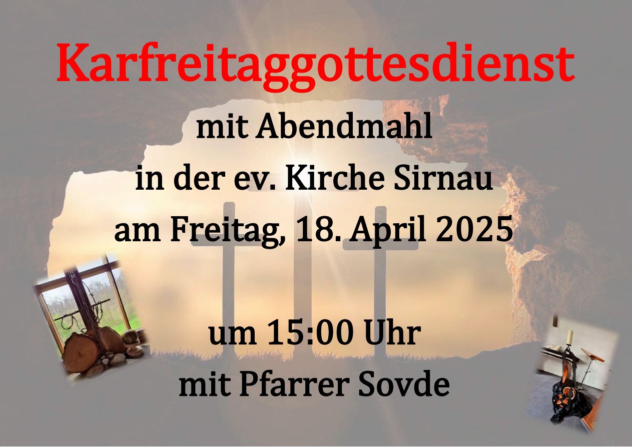 Karfreitaggottesdienst am 18.04.2025 um 15:00 Uhr in der ev. Kirche Sirnau